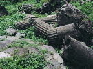 Frank Perret. Shattered columns and pieces of the concrete walls are scattered