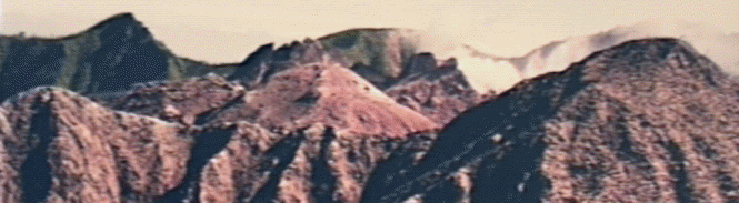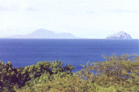 Viewed from the island of Dominica in the photograph above you can see the mountainous terrain of Montserrat in the distance. The typical rough topography of all the islands in the Lesser Antilles is a result of the volcanism, both ancient and recent. The highest point of the island used to be Chances peak at 914 m, but the new dome associated with the present volcanic activity (illustrated below) overshadowed this peak by early in 1997.