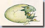 A typical clutch would have consisted of 20 to 25 eggs. The Maiasaur nests were found to contain not only the intact bottom of eggs but also an abundance of fragmented eggshells. These two valuable pieces of information allowed scientists to conclude that the young must have remained in the nest long enough to trample their eggshells. |