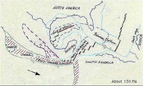 plaques il y a 130 millions d'années quand des zones de fissurage