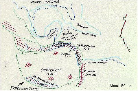 La plaque antillaise est maintenant formée. Le développement de la chaîne antillaise continu alors que le bassin antillais a cessé de s'élargir.