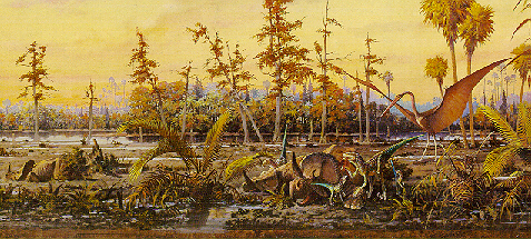river in flood but the rushing waters were too strong. Many dinosaurs